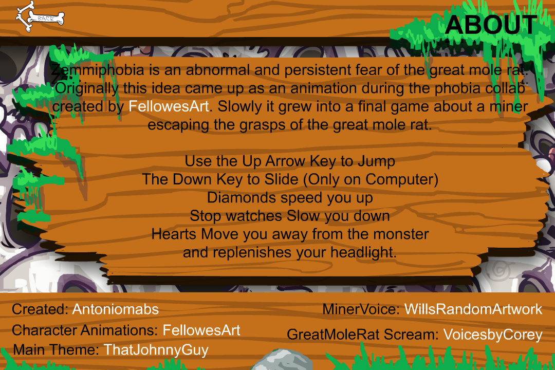 Today I am happy to announce the official release of my first entry for the flash-forward jam. This game is called Zemmiphobia. Zemmiphobia is an endless runner where you play as a miner trying to escape the evil wormlike mouth of the Mole Rat King. Naked and scary this mouse will devour you. Your goal, outrun him for as long as you can and put your glorious Newgrounds Username (Must have an account for leaderboards) in the board of bony miners, the higher the score the higher the chances of unlocking all the medals.